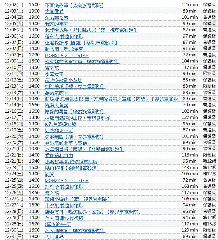 台北戲院時間查詢