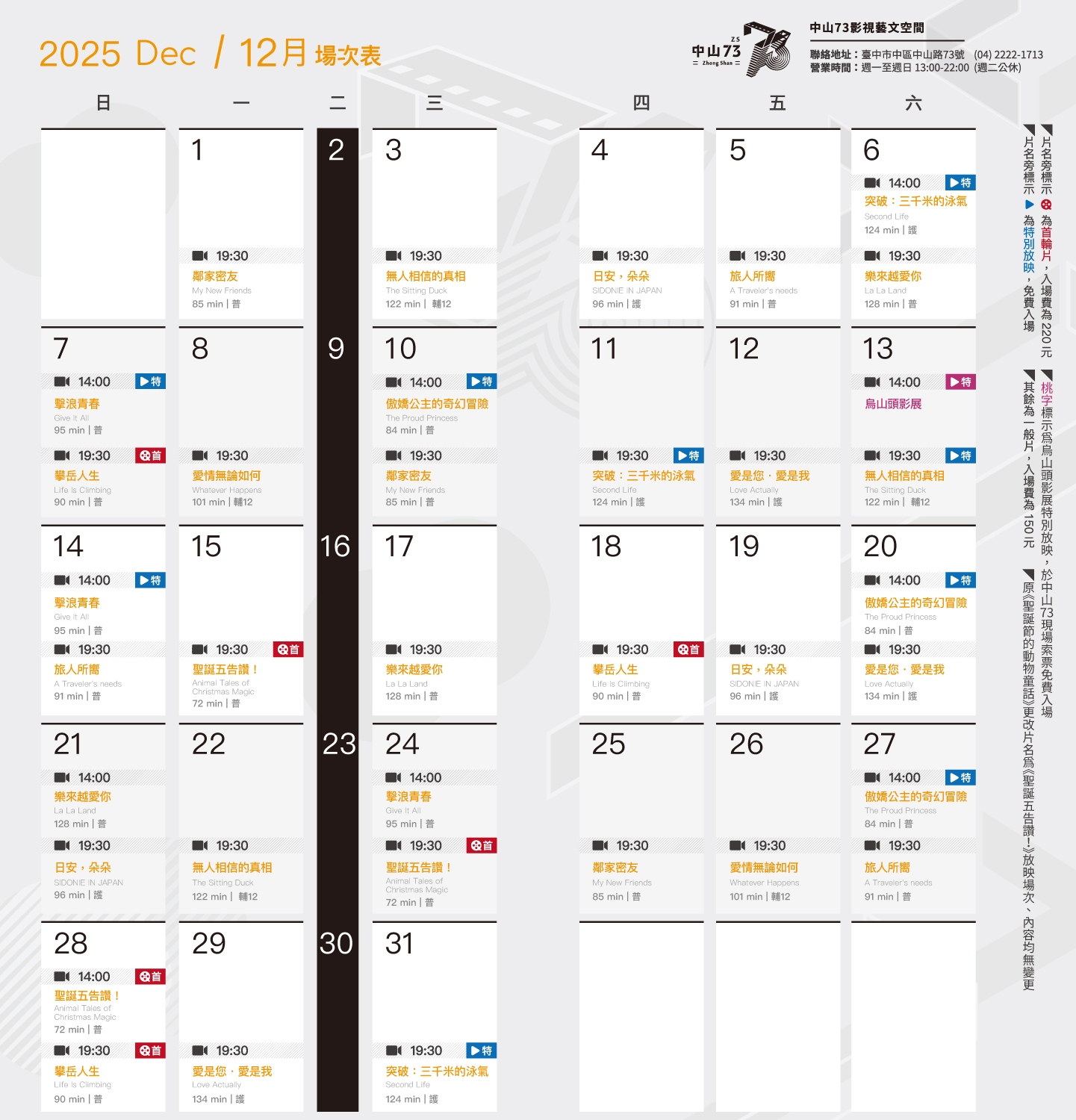場次表由 中山73影視藝文空間 提供。